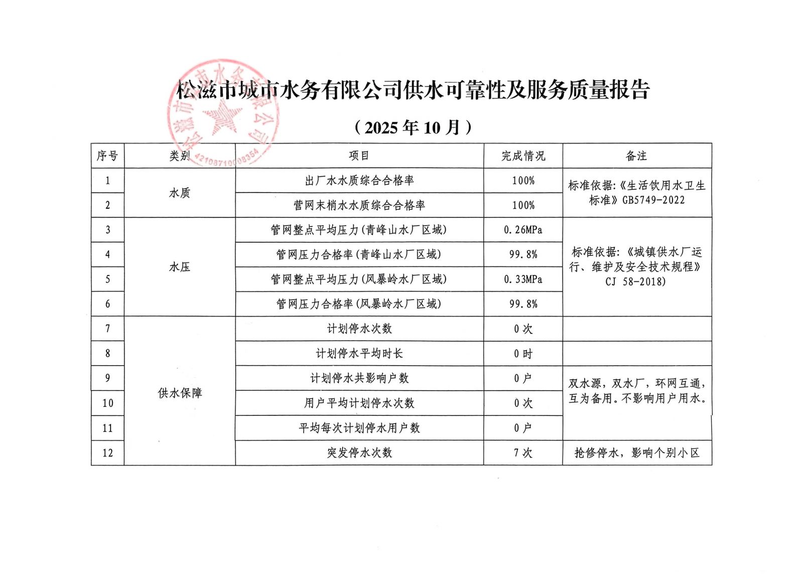 政策法规哈福配资 , 按月配资 , 股票按月配资网供水可靠性及服务质量报告 (2025年10月)
